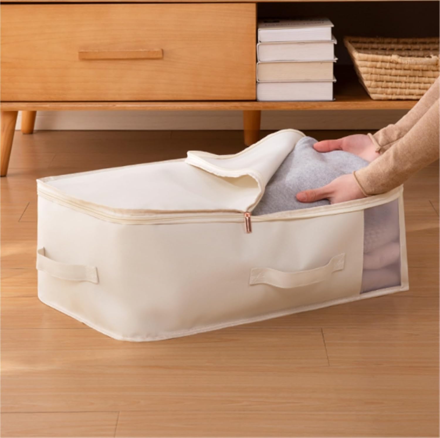Space Saving: The storage organizer bag is foldable and not take any space, great for store in closets shelf, under-bed, bedroom, even for garment, RV, garage or basement.Shape: CubeFunction: FoldableApplicable scene: BedroomStyle: Modern and simplePackage: Storage bag x1Used on many occasions: The storage bags can be used in a variety of ways, not only for bedroom wardrobe, but also for baby room storage, student dormitory, tool room storage, and towel storage, to conveniently store and keep items clean.This is just a fabric bag.It is stackable or can be flexibly fit into various sized cabinet or wardrobe when filled with items.