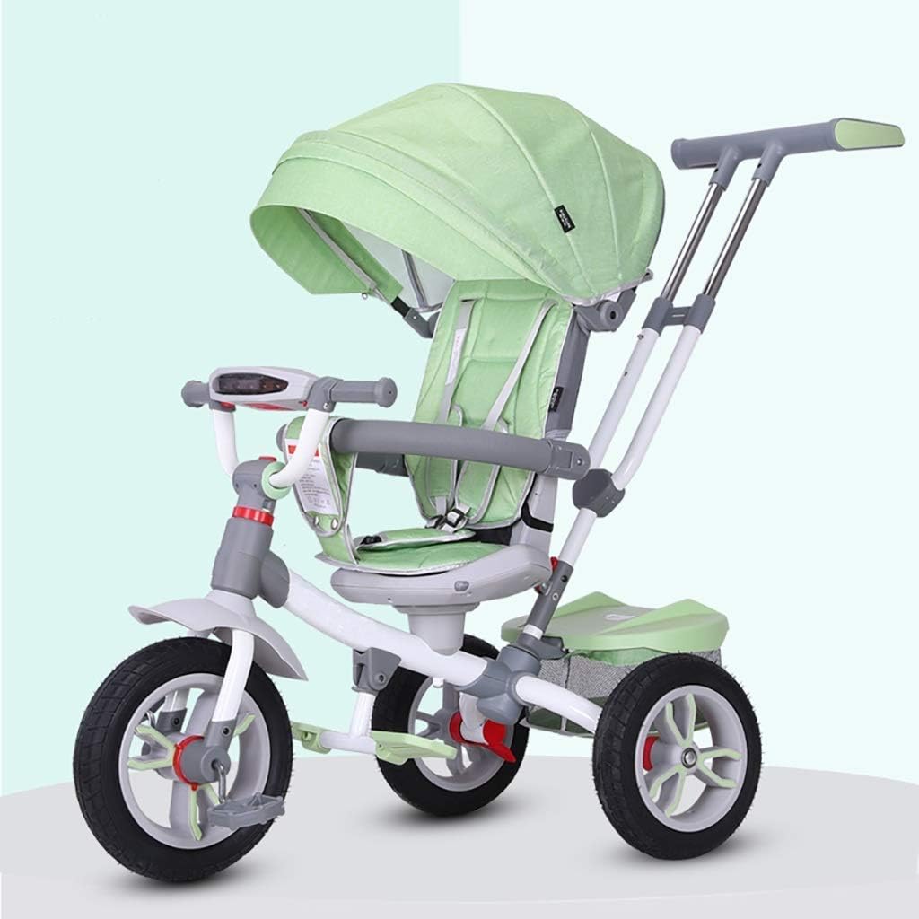Let your kids have fun during leisure time or holidays! A sturdy children's trike made of metal, with a bar for pushing and maneuvering. The tricycle has several functions. The handlebar can be removed. The soft handle and comfortable seat ensure a comfortable driving experience. The seat belt attached to the seat ensures a safe ride. 【Specifications】Product name: Children's tricycleColor: Blue, Green, PowderSize: 95x60x45cmRecommended height: 80-120cmMaterial: High quality carbon steel + environmentally friendly plasticWheel configuration: Q bomb high density wheelWith or without parasol: YesWith or without storage basket: YesCan be assembled: YesRecommended load capacity: Less than 30kgAge range: 1-6 years oldSize adjustable according to the baby's age and height. Note:1. Due to lighting problems, the color of the product and the picture may be slightly different, please refer to the actual product.3. You need to bring 3 AA batteries.